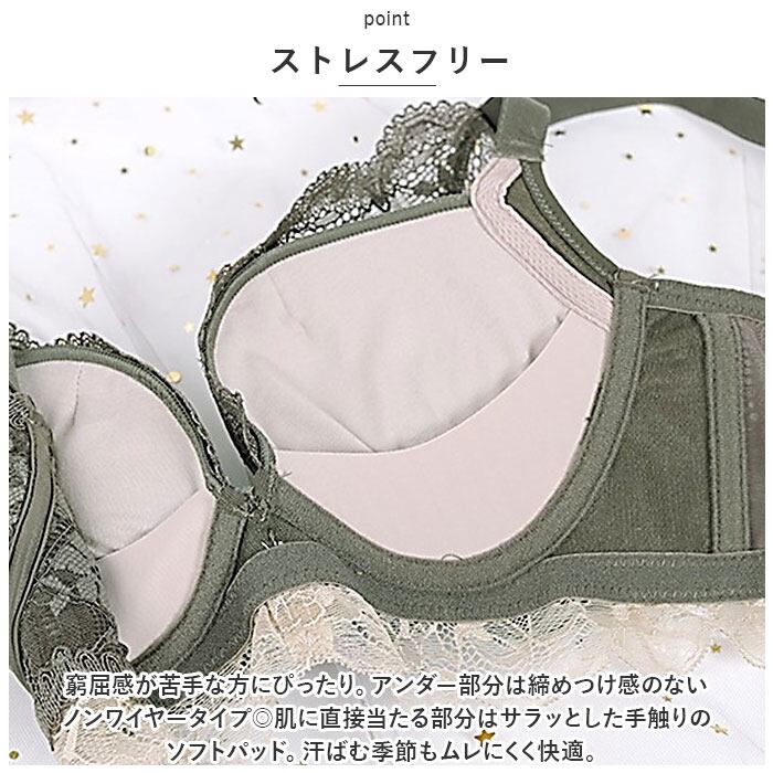 ・窮屈感が苦手な方にぴったり。アンダー部分は締めつけ感のないノンワイヤータイプ◎