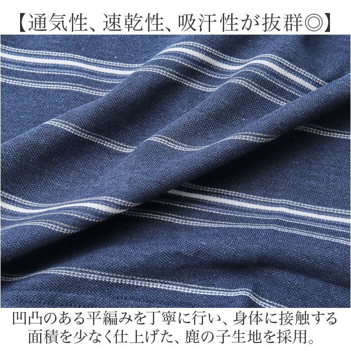 ・凹凸のある平編みを丁寧に行い、身体に接触する面積を少なく仕上げた、鹿の子生地を採用。