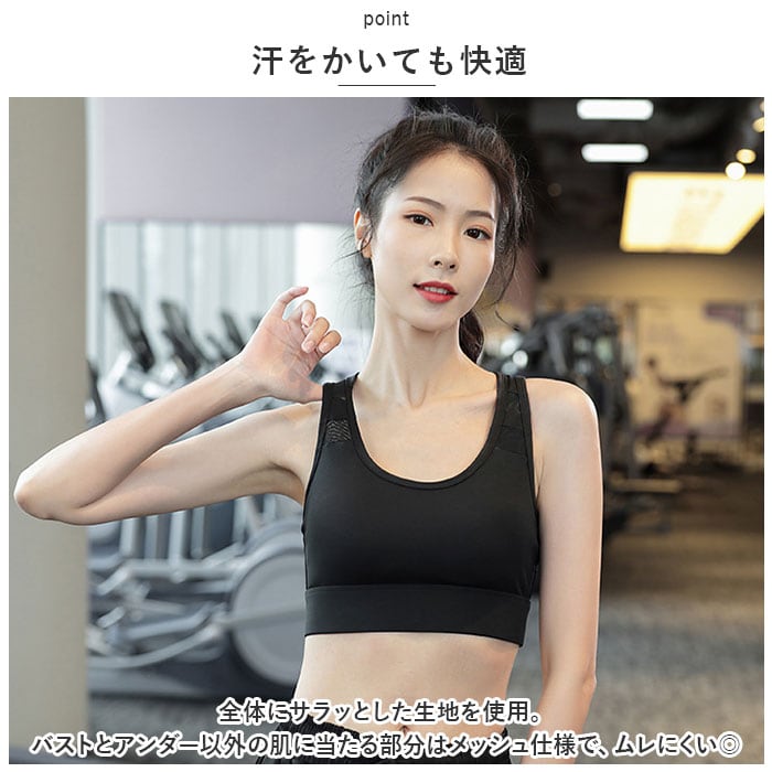 ・全体にサラッとした生地を使用。バストとアンダー以外の肌に当たる部分はメッシュ仕様で、ムレにくいのもポイント。