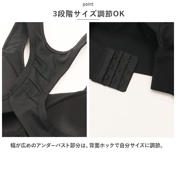 ・幅が広めのアンダーバスト部分は、背面ホックで自分サイズに調節。