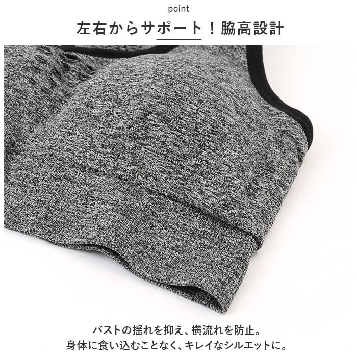 ・バストの揺れを抑え、横流れを防止。身体に食い込むことなく、キレイなシルエットに。