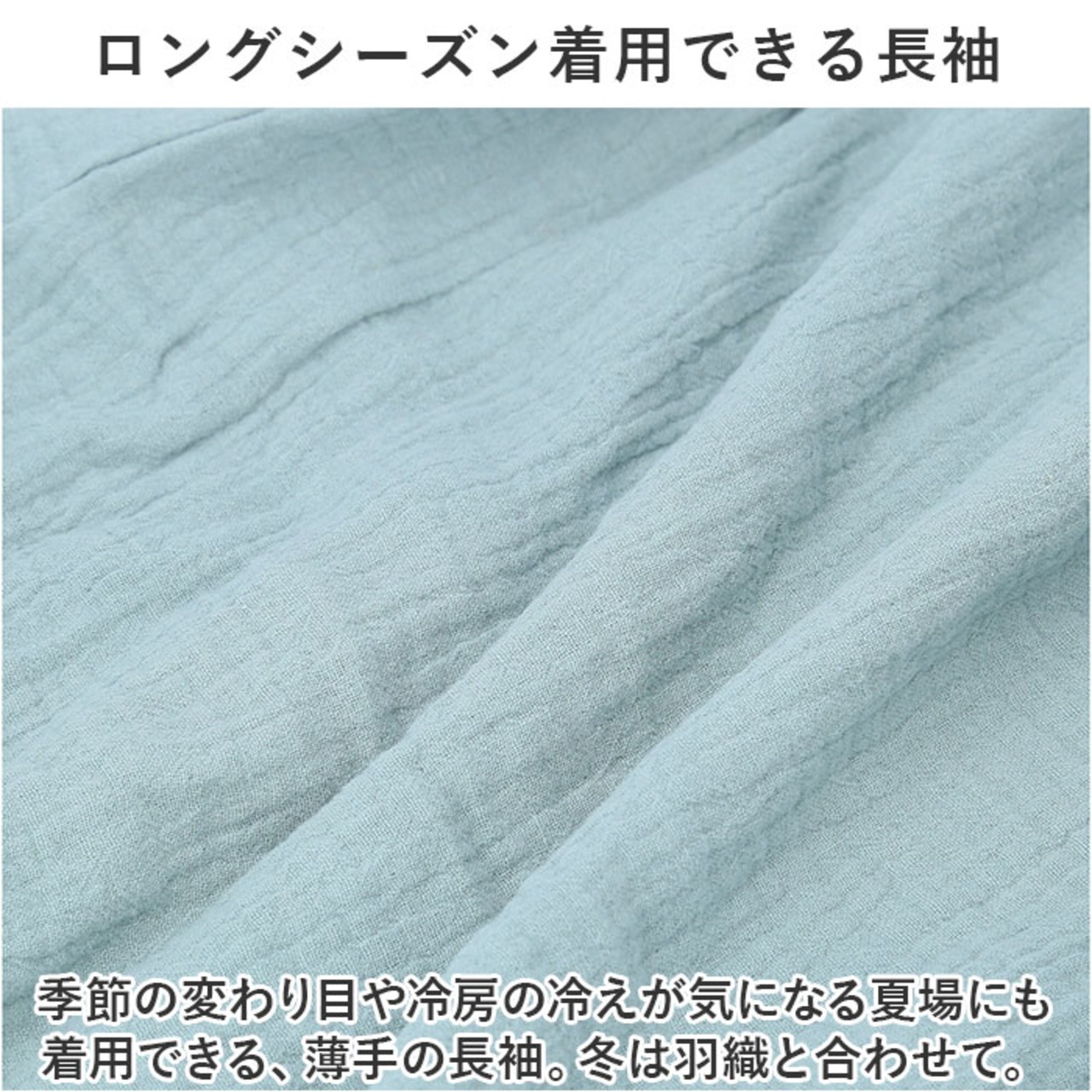 ・季節の変わり目や冷房の冷えが気になる夏場にも着用できる、薄手の長袖。冬は羽織と合わせて。