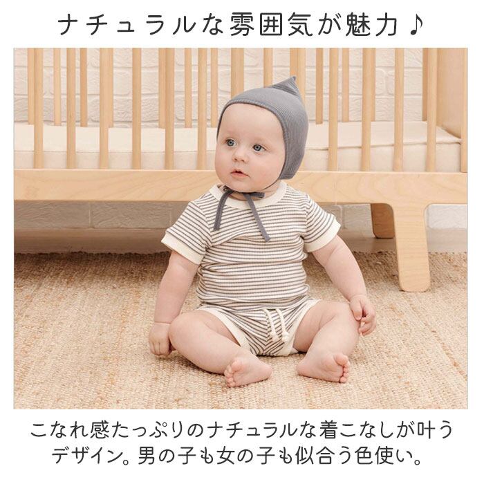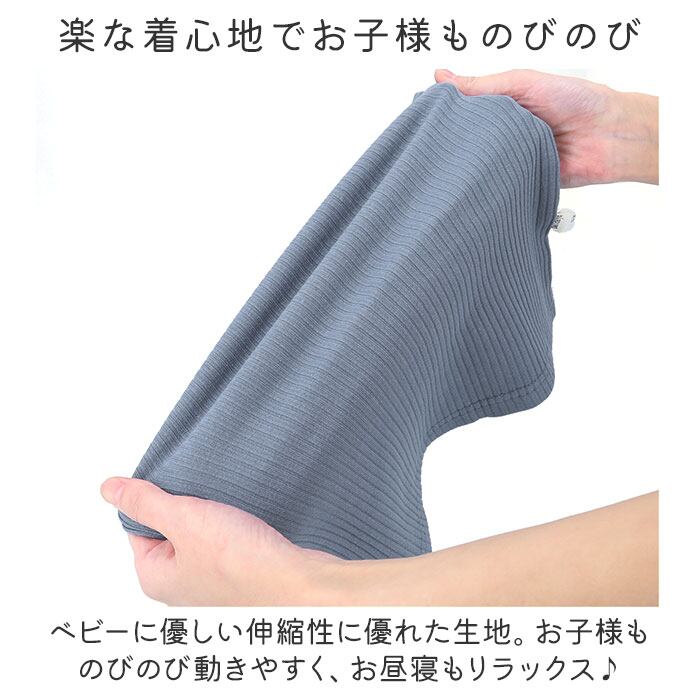 ・ベビーに優しい伸縮性に優れた生地。お子様ものびのび動きやすく、お昼寝もリラックス♪