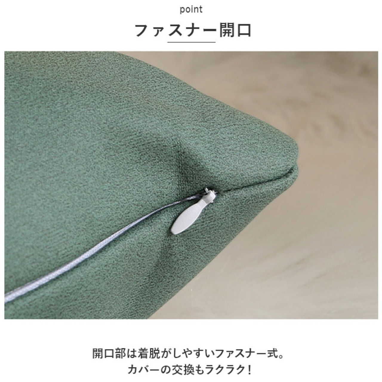 ・開口部は着脱がしやすいファスナー式。カバーの交換もラクラク!