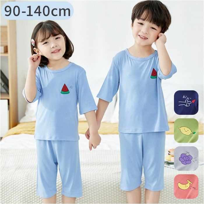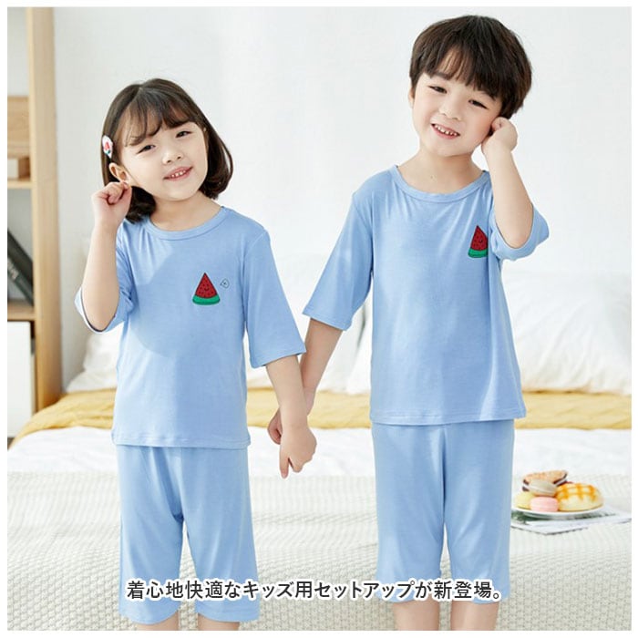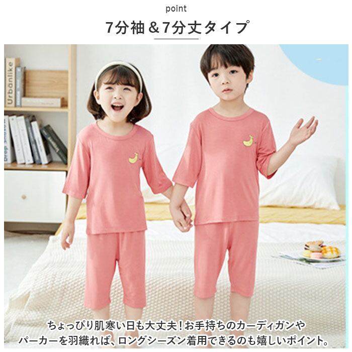 パジャマ 上下セット 夏 キッズ 通販 ルームウエア 7分袖 7分丈 パンツ ハーフパンツ セットアップ 上下 膝丈 膝下 子供用 キッズ 子供 子ども こども 薄手 ベビー 男の子 女の子