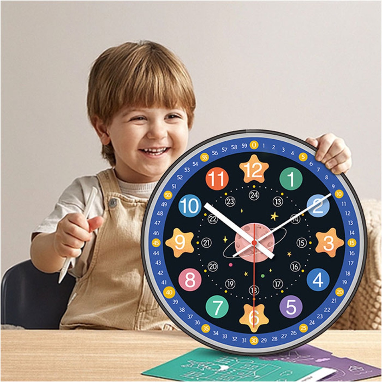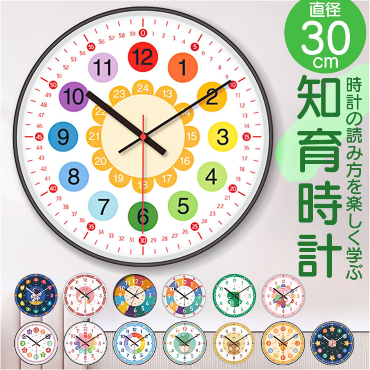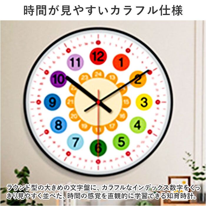 ・大きく見やすい文字盤で、時計の読み方を楽しくお勉強!壁に掛けて、自然に時間が学べる「子ども 知育掛け時計」が新登場。
