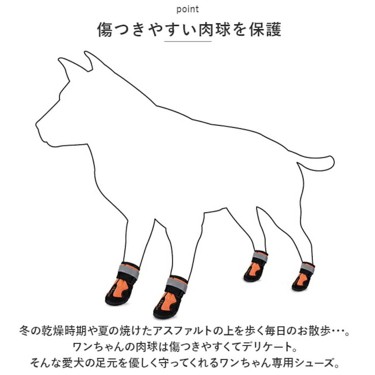 ・冬の乾燥時期や夏の焼けたアスファルトの上を歩く毎日のお散歩・・・。ワンちゃんの肉球は傷つきやすくてデリケート。そんな愛犬の足元を優しく守ってくれるワンちゃん専用シューズ。