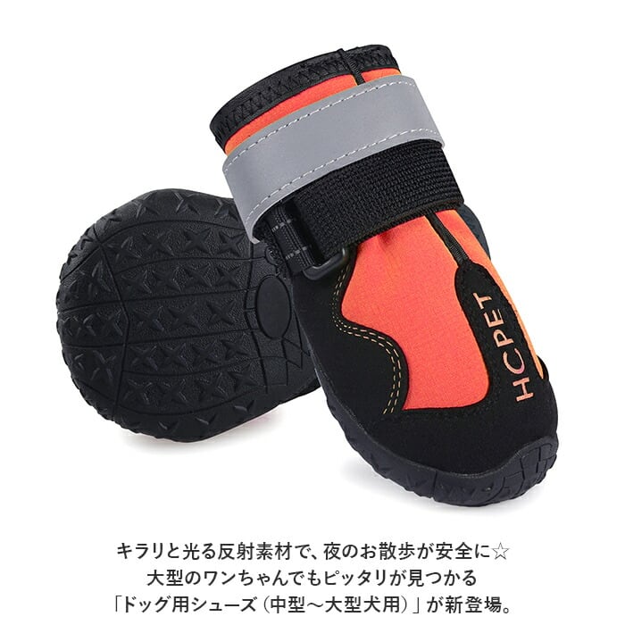 ・キラリと光る反射素材で、夜のお散歩が安全に☆大型のワンちゃんでもピッタリが見つかる「ドッグ用シューズ(中型~大型犬用)」が新登場。