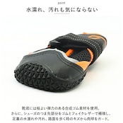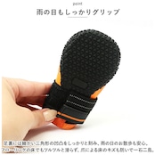 ・足首を留める下側の面ファスナーテープとつま先先端のミッドソールには、自動車のライトをキラリと反射するリフレクター素材を配置。薄暗い雨の日や夜のお散歩がより安全に。