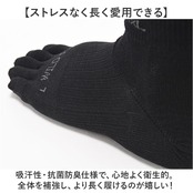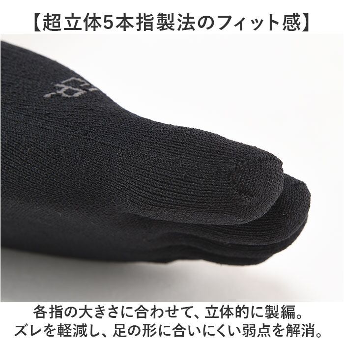 ・各指の大きさに合わせて、立体的に製編。ズレを軽減し、足の形に合いにくい弱点を解消。