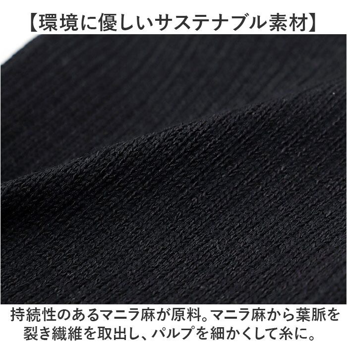 ・持続性のあるマニラ麻が原料。マニラ麻から葉脈を裂き繊維を取出し、パルプを細かくして糸に。
