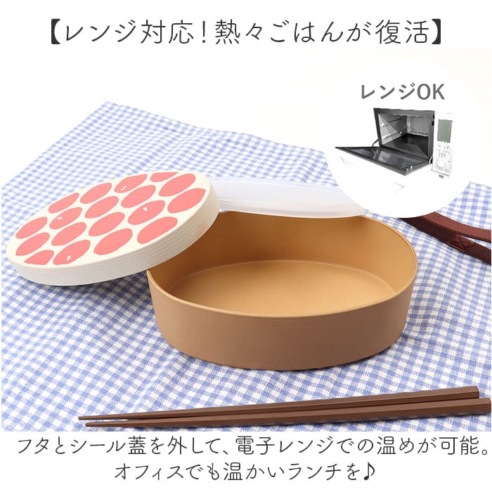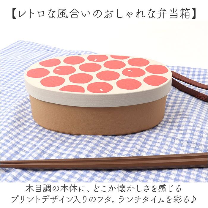・木目調の本体に、どこか懐かしさを感じるプリントデザイン入りのフタ。ランチタイムを彩る♪