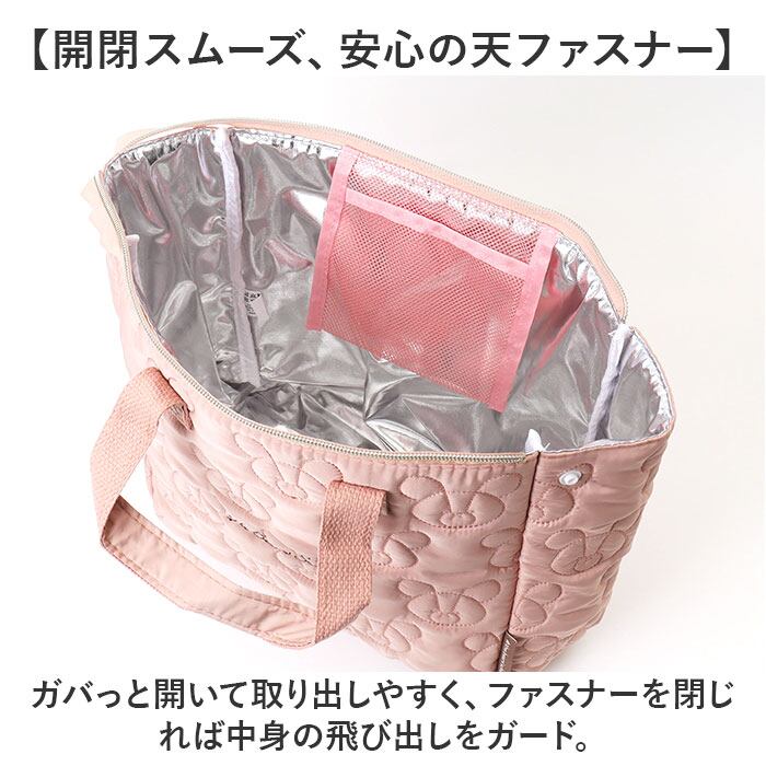・メッシュポケットに、ミニサイズの保冷剤を。バッグのファスナーを閉めれば、冷気を逃さない!