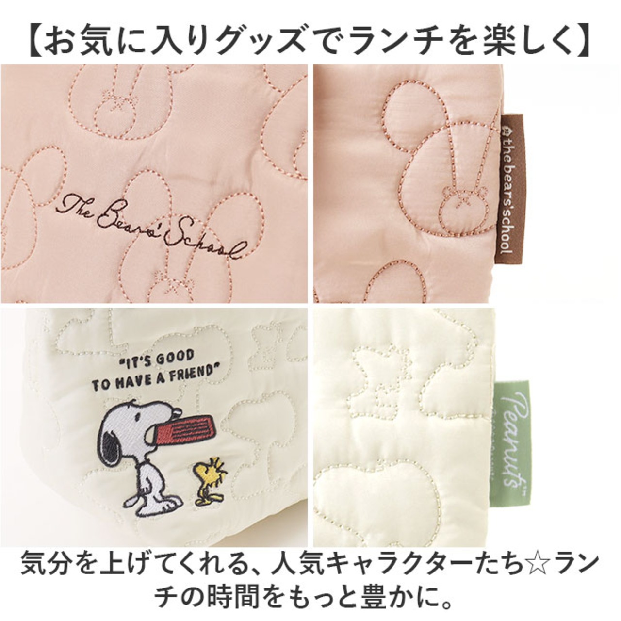 ・ランチのお供にぴったり☆キャラクターデザインの「キルト生地保冷ランチトート」。