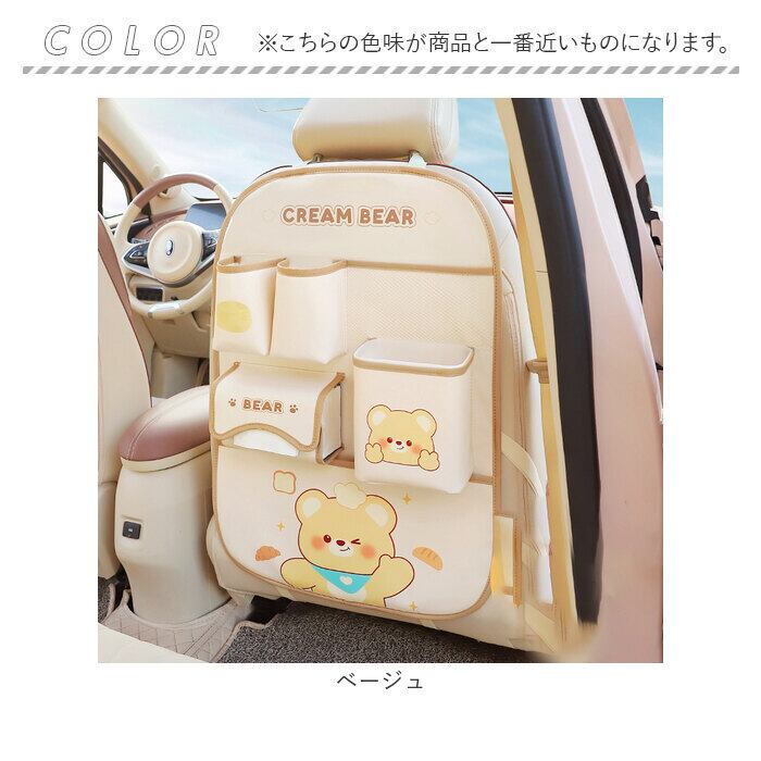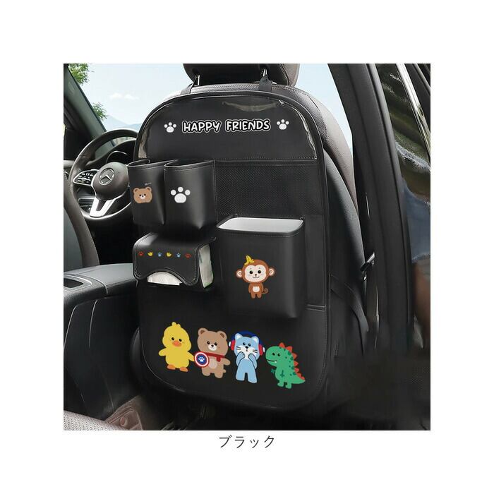 ・クリアポケット×1、面ファスナー式ティシュポケット×1、ゴミ箱用ポケット×1、メッシュポケット×1、オープンポケット×3