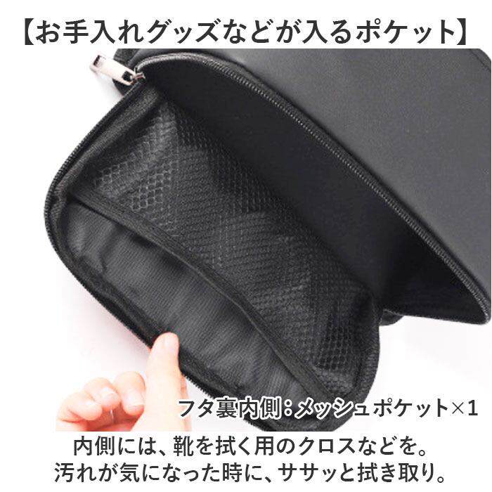 ・内側には、靴を拭く用のクロスなどを。汚れが気になった時に、ササッと拭き取り。