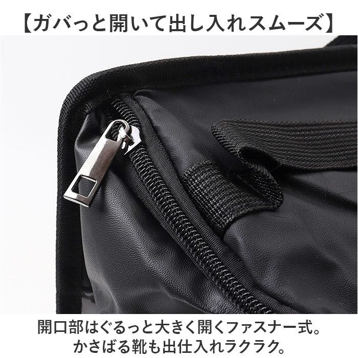 ・開口部はぐるっと大きく開くファスナー式。かさばる靴も出仕入れラクラク。