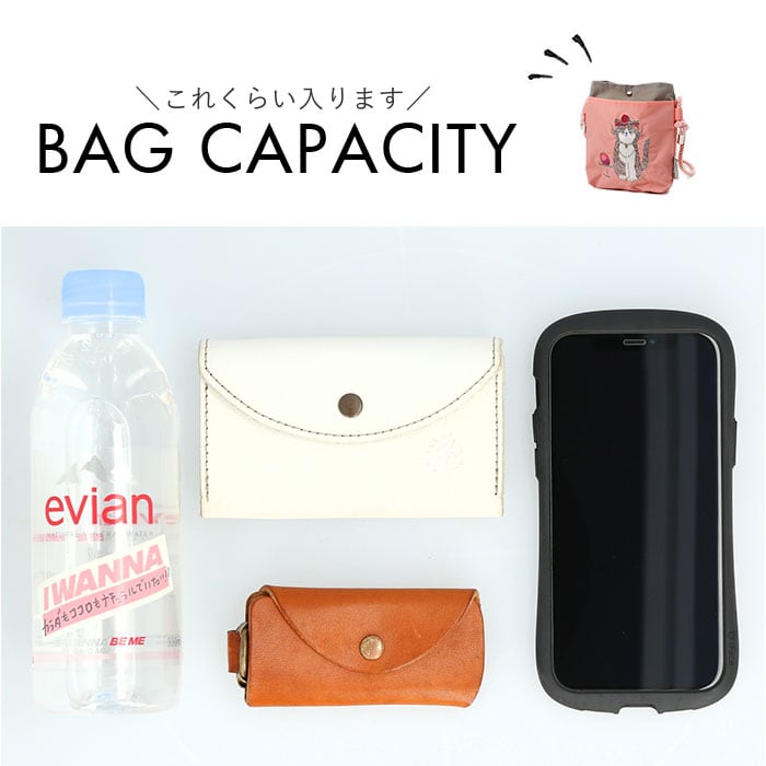 ・B6、350mペットボトルOK。スマホやエチケットグッズ、リップなどの必需品がすっきり。