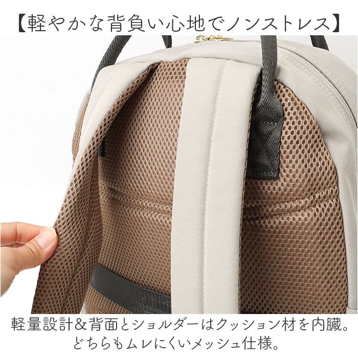 ・A4対応、13.3インチまでのPC対応クッションポケット付。容量約16Lの程よい収納力◎
