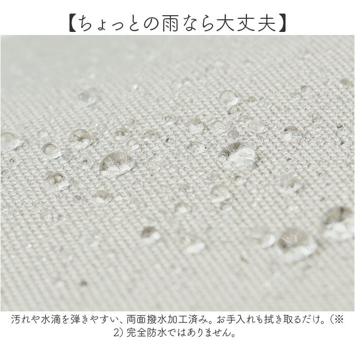 ・汚れや水滴を弾きやすい、両面撥水加工済み。お手入れも拭き取るだけ。