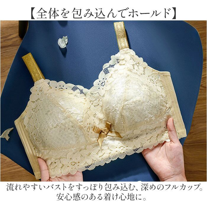 ・流れやすいバストをすっぽり包み込む、深めのフルカップ。安心感のある着け心地に。