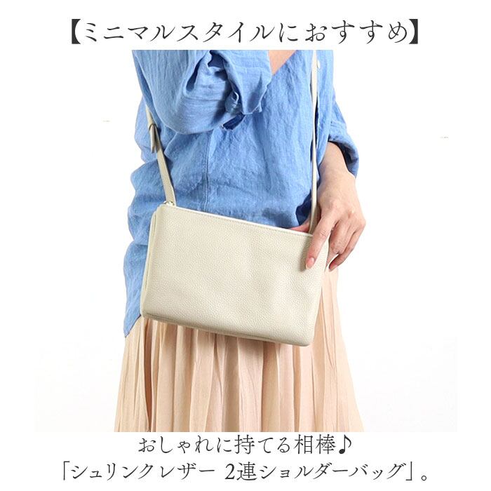 ・おしゃれに持てる相棒♪「シュリンクレザー 2連ショルダーバッグ」。
