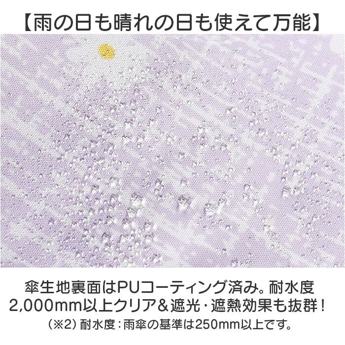 ・傘生地裏面はPUコーティング済み。耐水度2,000mm以上クリア&遮光・遮熱効果も抜群!
