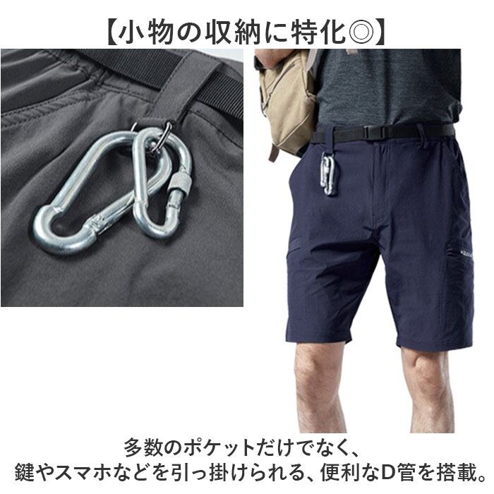 ・多数のポケットだけでなく、鍵やスマホなどを引っ掛けられる、便利なD管を搭載。