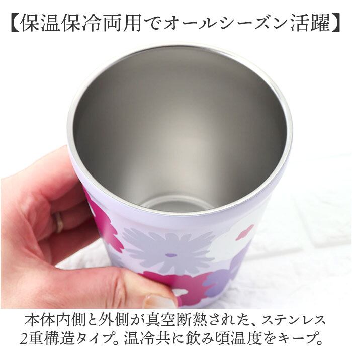 ・本体内側と外側が真空断熱された、ステンレス2重構造タイプ。温冷共に飲み頃温度をキープ。