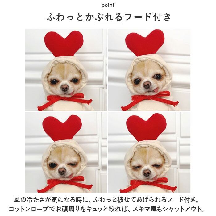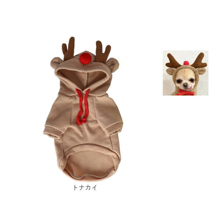 ・フードには、トナカイさんの角やかえるのお目々、リンゴの葉っぱを立体的に表現。ワンちゃんの誕生日やクリスマスパーティなどで、愛犬とご家族とのフォトジェニックな写真を撮りたいときにオススメ。