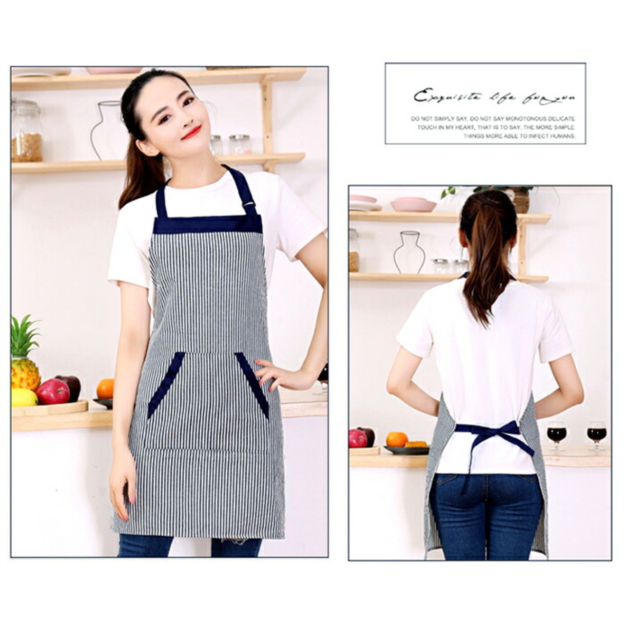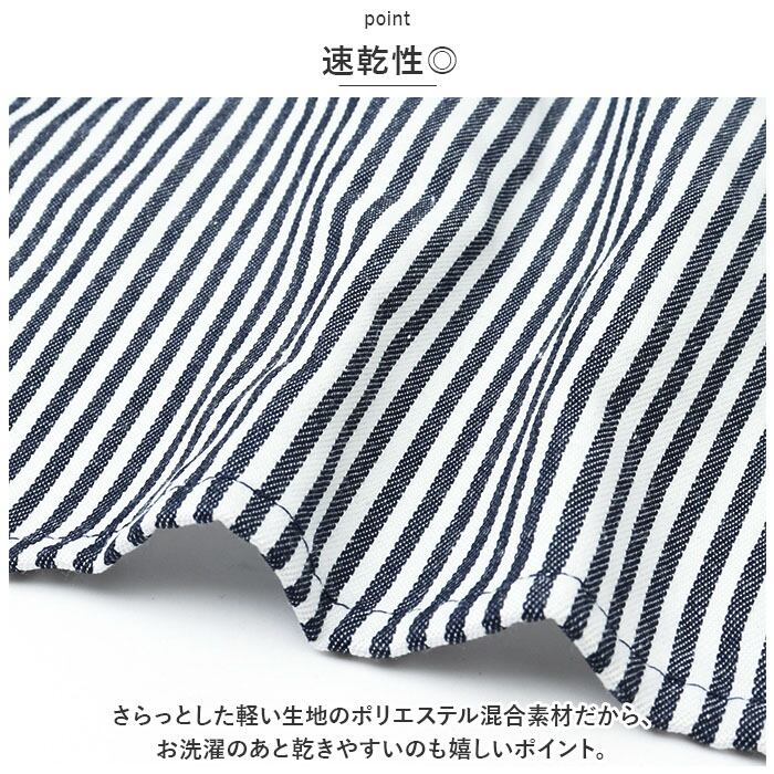 ・性別や年代問わず使いやすいストライプ柄。同色のライン使いがアクセントに。ご家庭でのご使用はもちろん、飲食店や保育園などのユニホームとしてもぴったり。