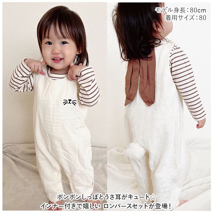 ・ポンポンしっぽとうさ耳がキュート☆インナー付きで嬉しい ロンパースセットが登場!