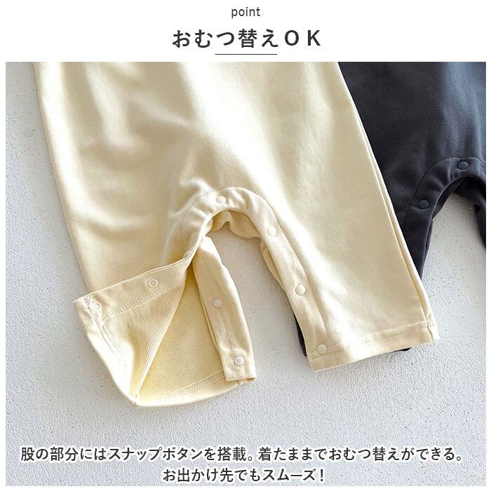 ・股の部分にはスナップボタンを搭載。着たままでおむつ替えができる。お出かけ先でもスムーズ!