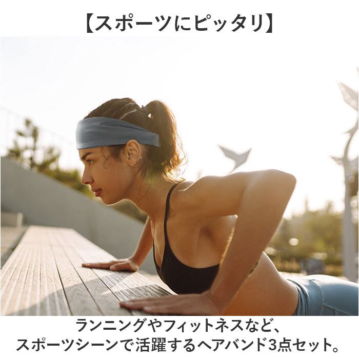 ・ランニングやフィットネスなど、スポーツシーンで活躍するヘアバンド 3点セット。
