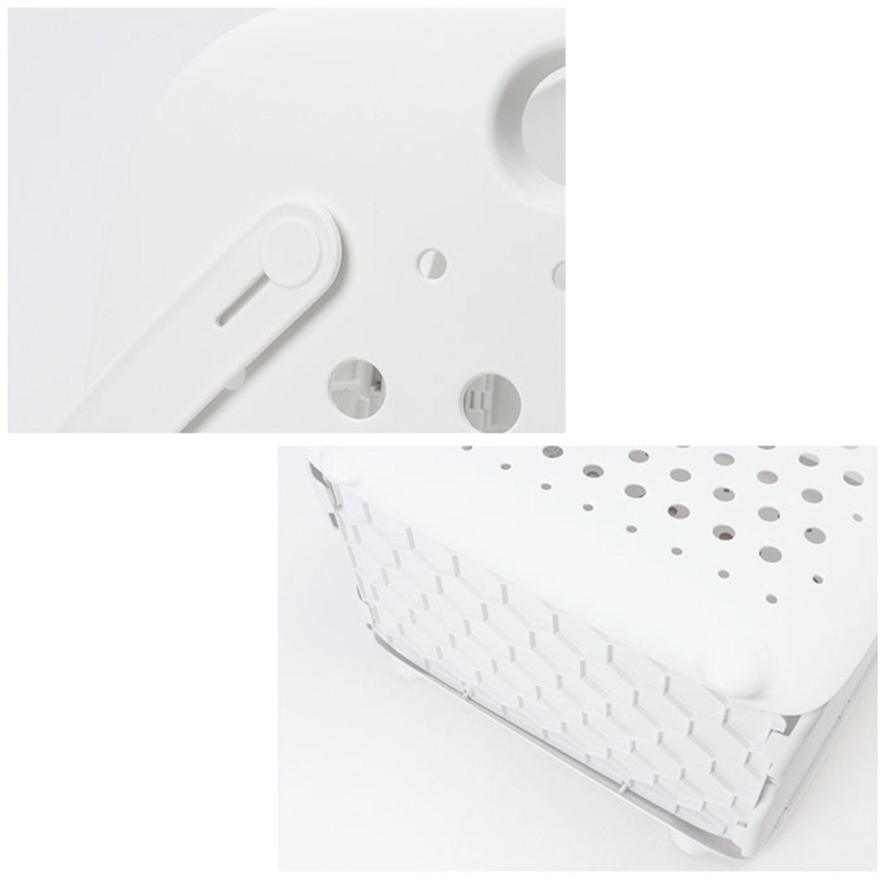 ・穴あきデザインなので、カゴの中は蒸れにくく通気性◎。濡れた衣類を入れても安心。