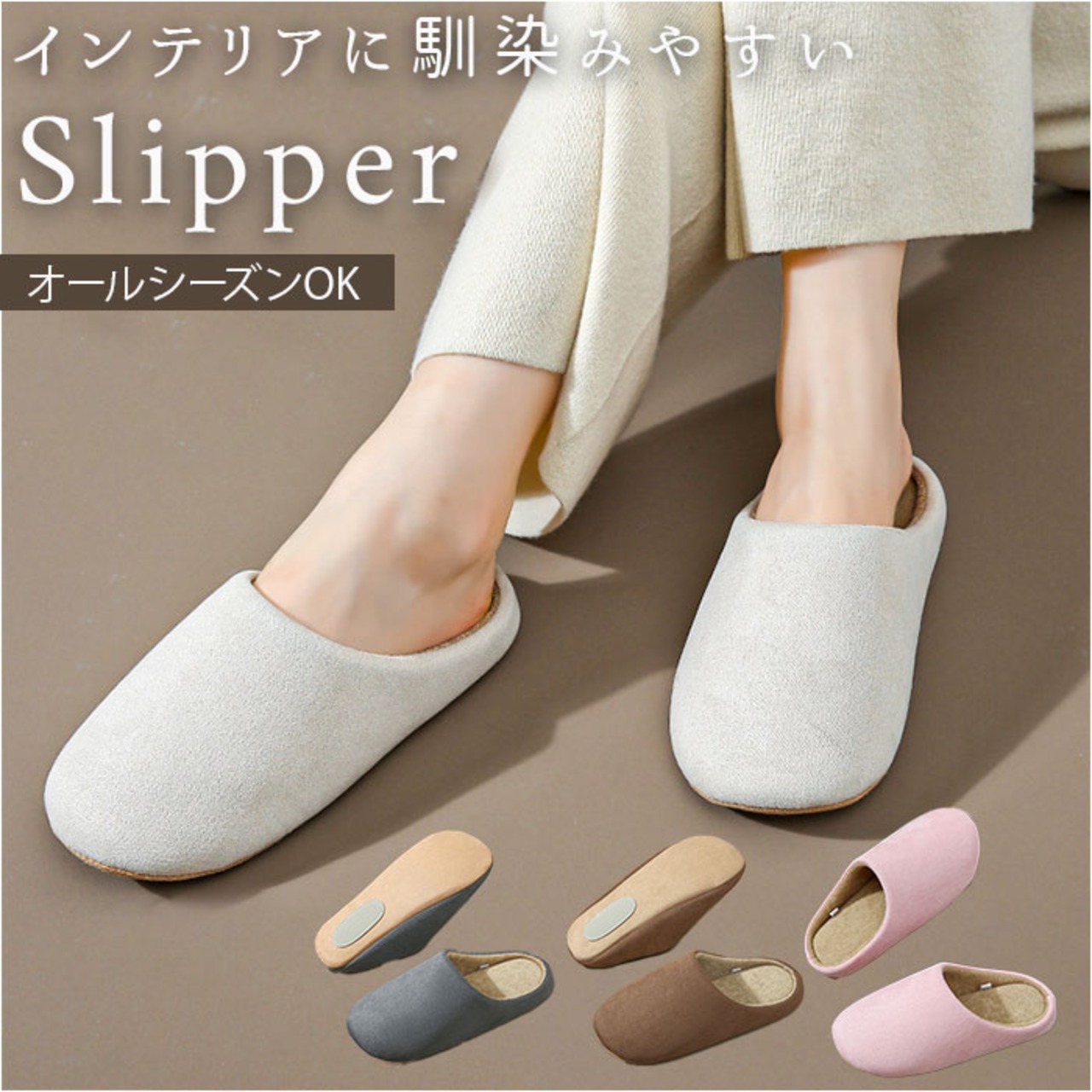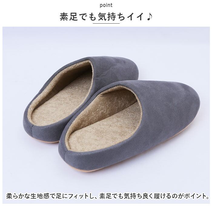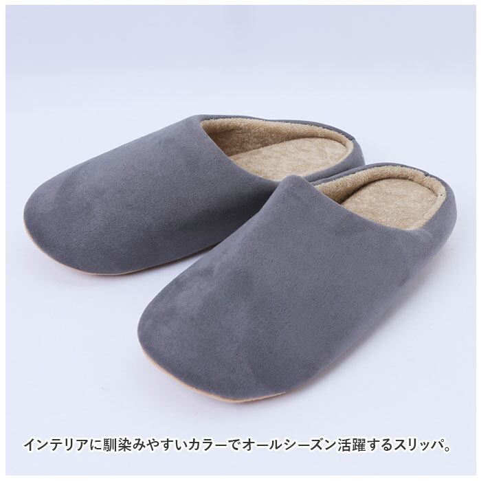・インテリアに馴染みやすいカラーでオールシーズン活躍するスリッパ。