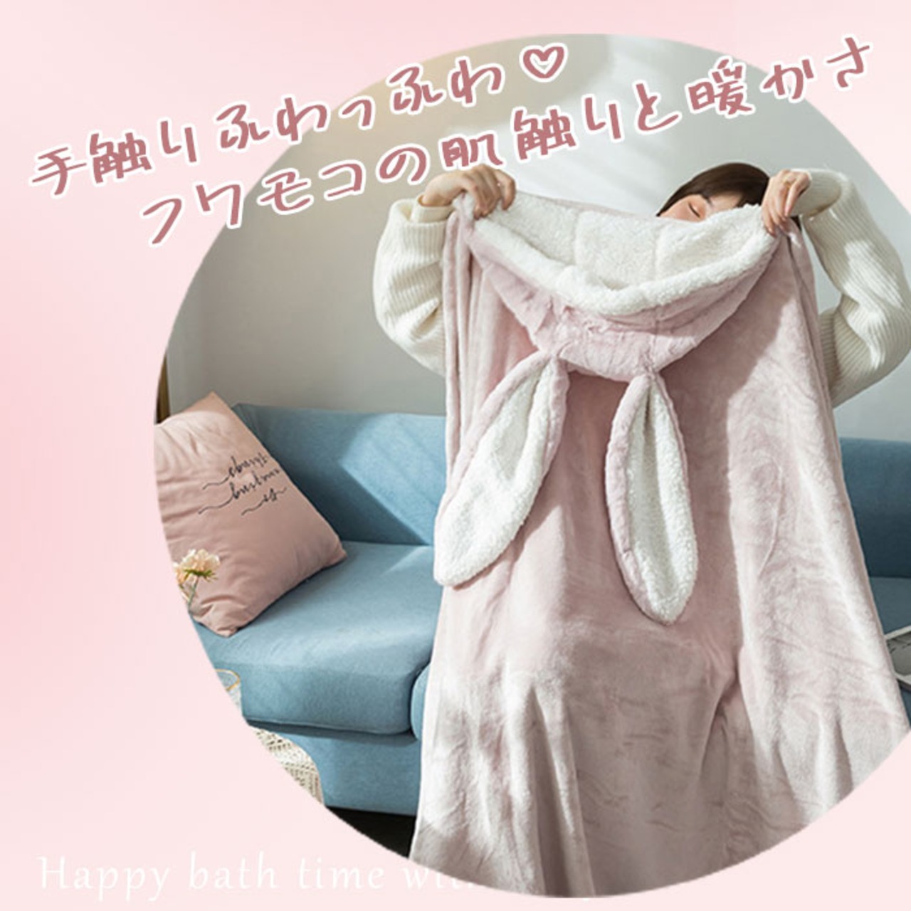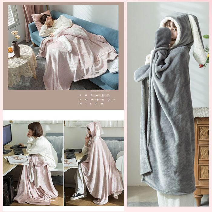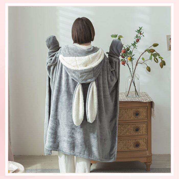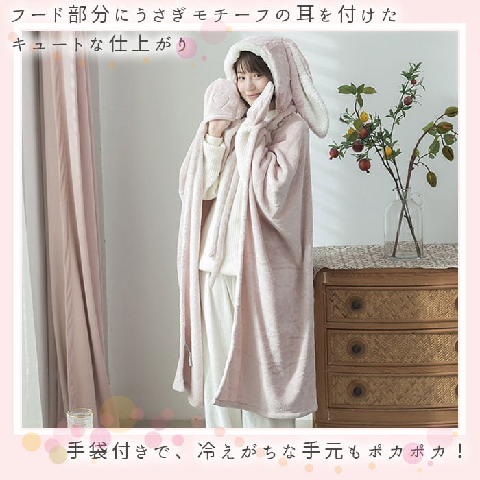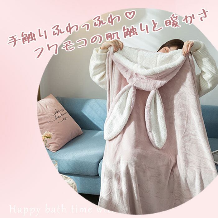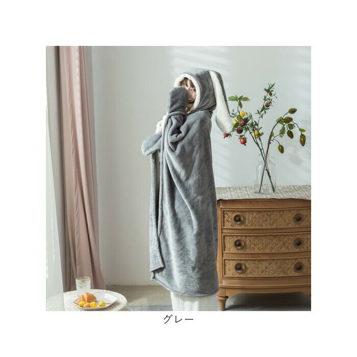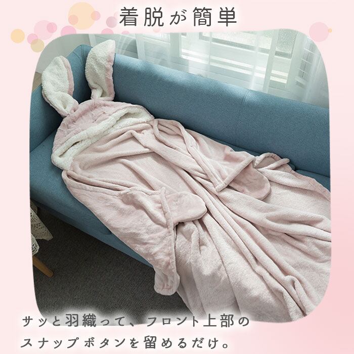 着る毛布 かわいい 通販 ブランケット 膝掛け ひざ掛け 毛布 うさ耳 ウサギ フード付き ボタン付き 前開き ふわふわ もこもこ ランネル生地 暖かい 厚手 洗える 動物 テレワーク お昼寝 ルームウェア 部屋着 おしゃれ オシャレ
