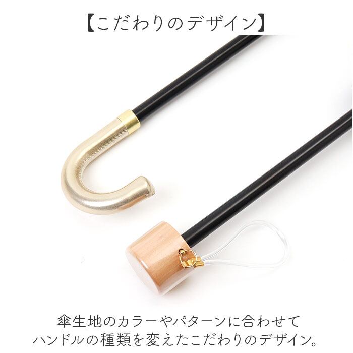 ・傘生地のカラーやパターンに合わせてハンドルの種類を変えたこだわりのデザイン。