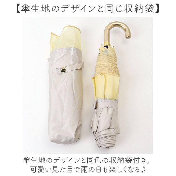 ・傘生地のデザインと同色の収納袋付き。可愛い見た目で雨の日も楽しくなる♪