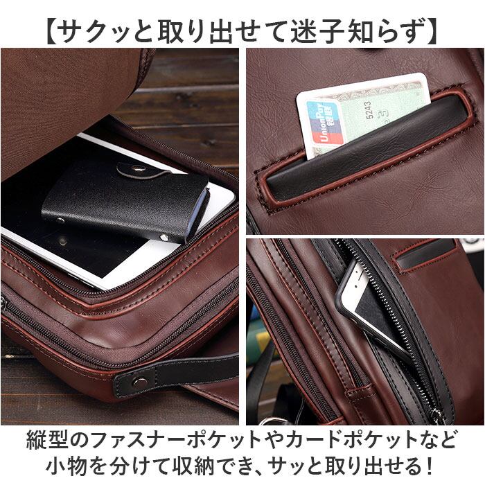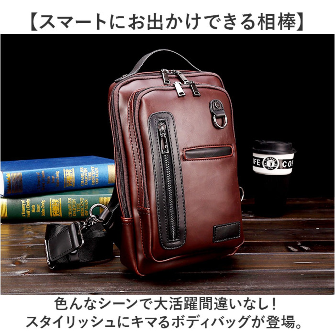 メンズ ボディバッグ 斜め掛け 通販 大容量 ワンショルダーバッグ ボディーバッグ ショルダーバッグ バッグ バック 鞄 かばん カバン PUレザー 大きめ ダブルファスナー 持ち手 カードポケット シンプル 茶 ブラウン 通勤 通学 おしゃれ レディース