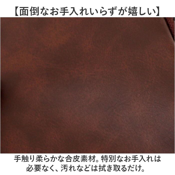 ・手触り柔らかな合皮素材。特別なお手入れは必要なく、汚れなどは拭き取るだけ。