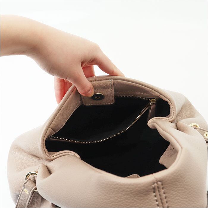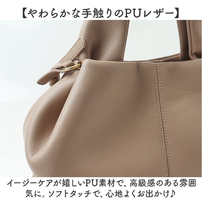・イージーケアが嬉しいPU素材で、高級感のある雰囲気に。ソフトタッチで、心地よくお出かけ♪