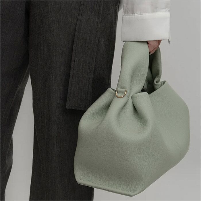 ・ワイドな持ち手と、ころんとフォルム。くしゅっとした遊びをプラスした、上級者アイテム。