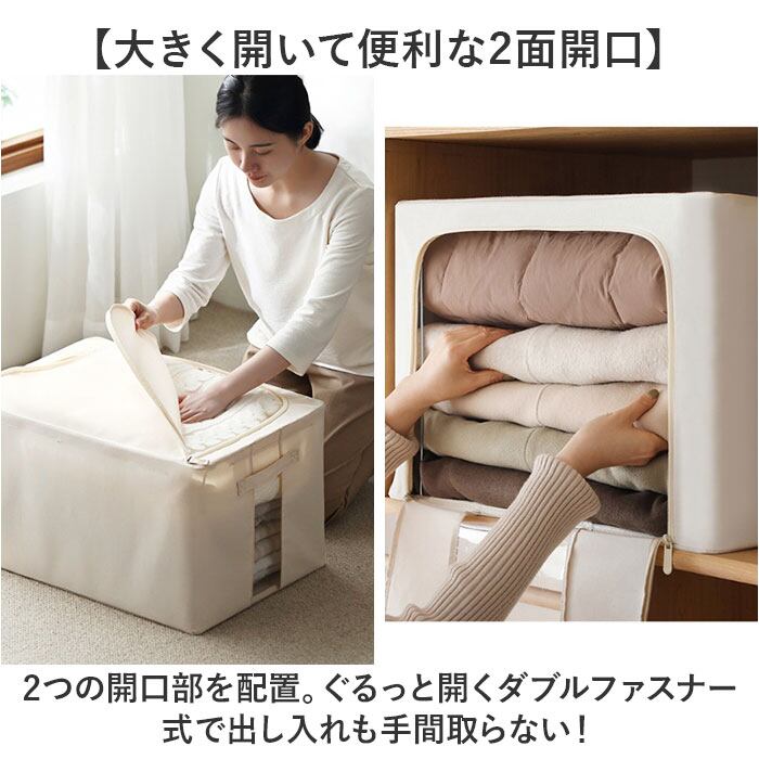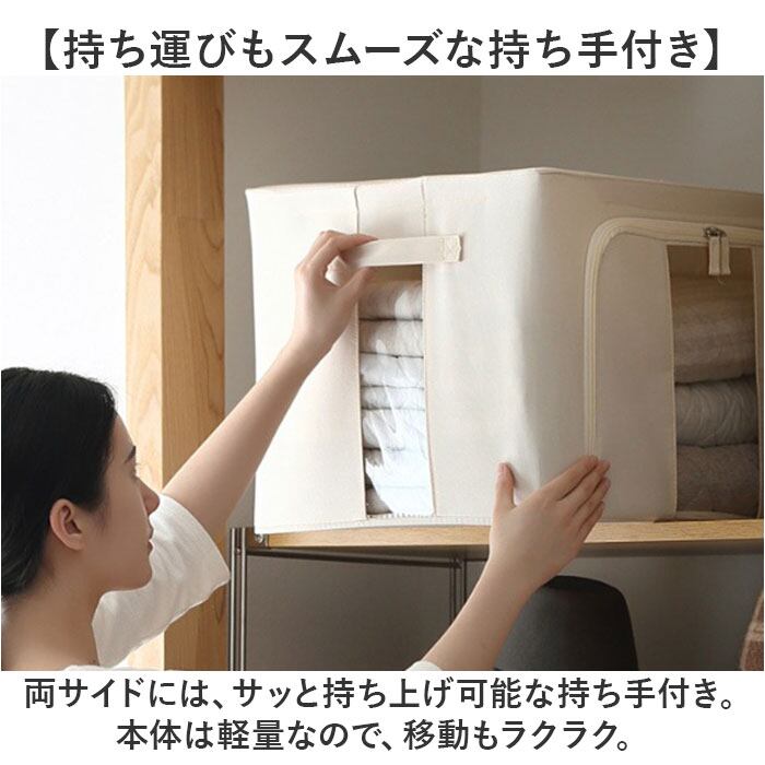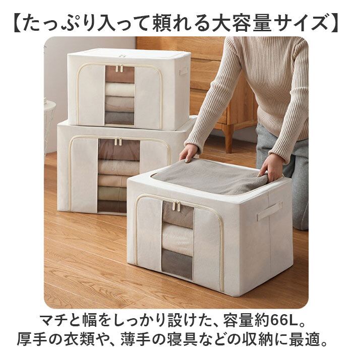 ・マチと幅をしっかり設けた、容量約66L。厚手の衣類や、薄手の寝具などの収納に最適。