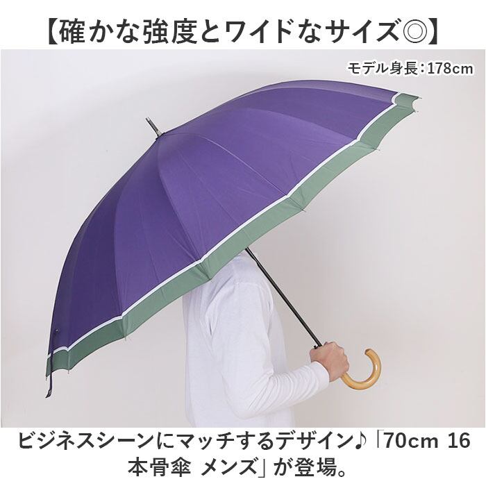 ・ビジネスシーンにマッチするデザイン♪「70cm 16本骨傘 メンズ」が登場。