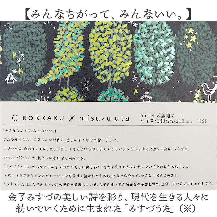 ・「みすづうた」と箔押しブランド「ROKKAKU」のコラボ♪「A5サイズ無地ノート」。
