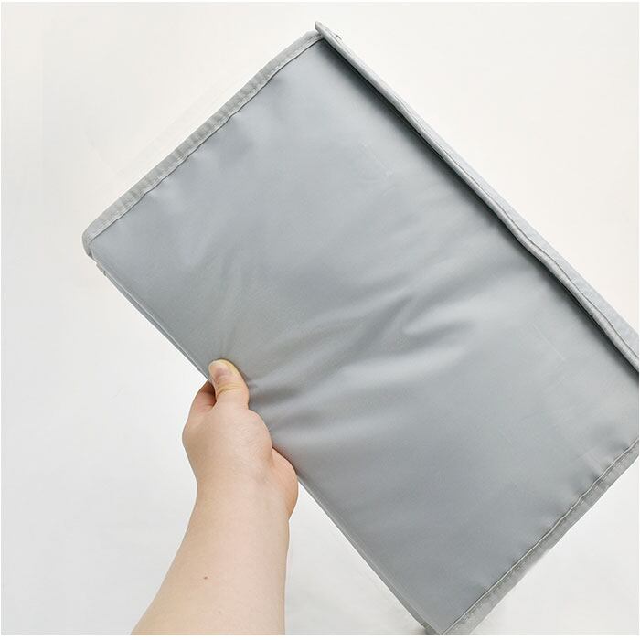 ・使わない時は平たく折りたたんで面ファスナーを留め、半分にしてボタンでまとめればOK。