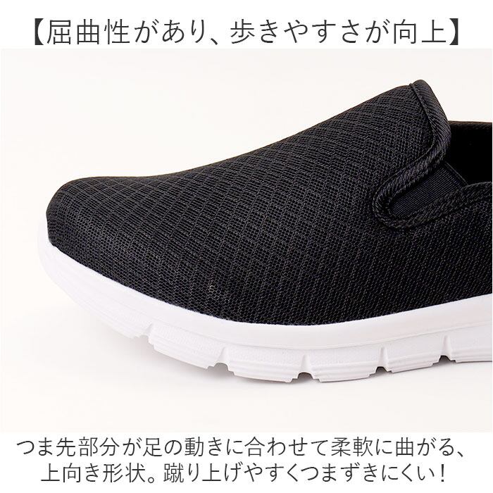 ・つま先部分が足の動きに合わせて柔軟に曲がる、上向き形状。蹴り上げやすくつまずきにくい!