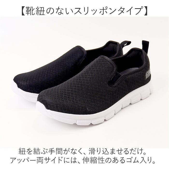 ・紐を結ぶ手間がなく、滑り込ませるだけ。アッパー両サイドには、伸縮性のあるゴム入り。