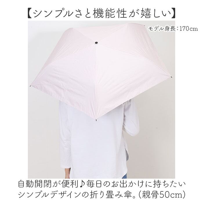 ・自動開閉が便利♪毎日のお出かけに持ちたいシンプルデザインの折り畳み傘。(親骨50cm)